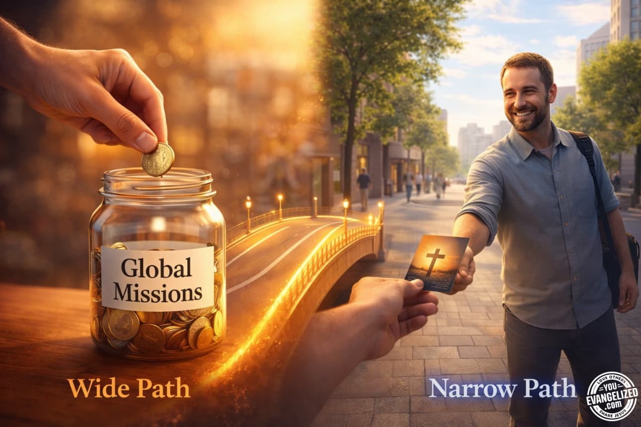 The danger is when we use our giving as a wide, easy road to avoid the personal 'narrow path' of talking to people about Jesus.
